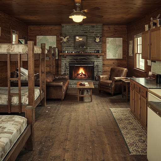 "Not again," Aaden added, following her into the cabin. The cabin was old but well taken care of. There were four bunks, a kitchen, a sitting area, and a fireplace. I had never seen something so cool—paintings on the walls, breathing bright light into the old cabin.